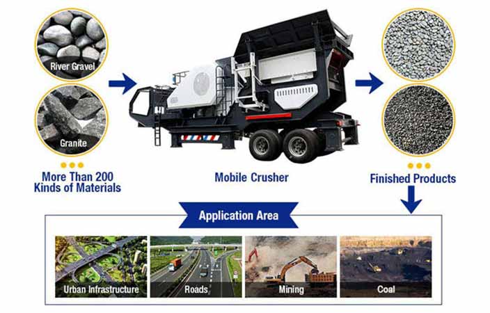 Mobile jaw crusher can be used for primary and fine crushing of the materials, it is the popular choice of the medium and large sized production scale.